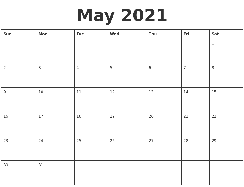 Calendar Page For May 2021